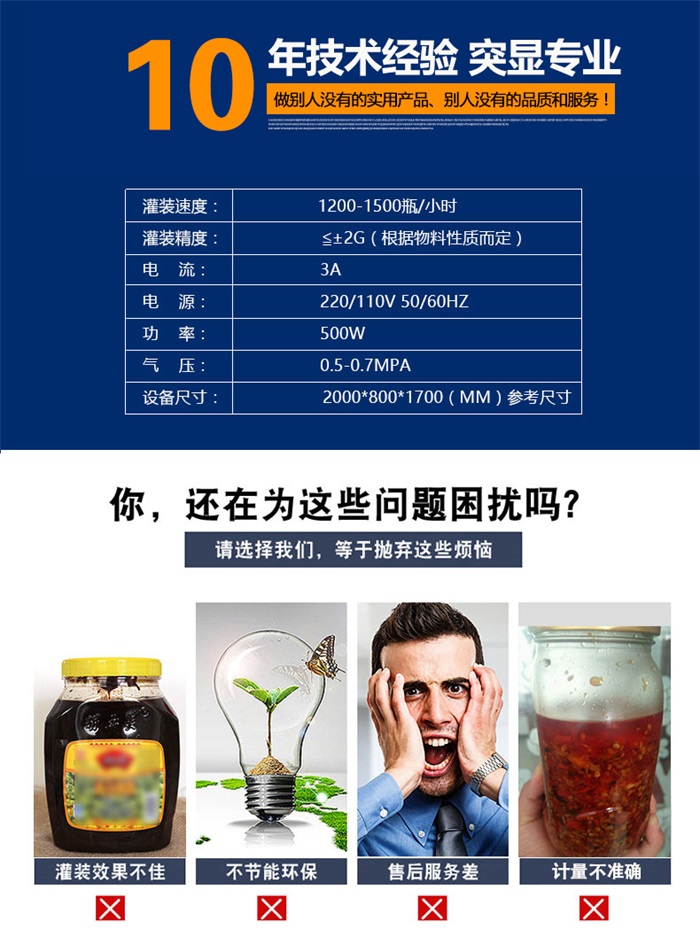 該系列灌裝機采用活塞式氣缸氣動原理,適用于調味品中帶顆粒并且濃度較大的香菇醬、辣椒醬、豆瓣醬、花生醬、芝麻醬、果醬、牛油火鍋底料、紅油火鍋底料等較為粘稠醬類的灌裝。灌裝轉閥可以很具客戶物料定做加大,以適應不同客戶物料的灌裝需求。