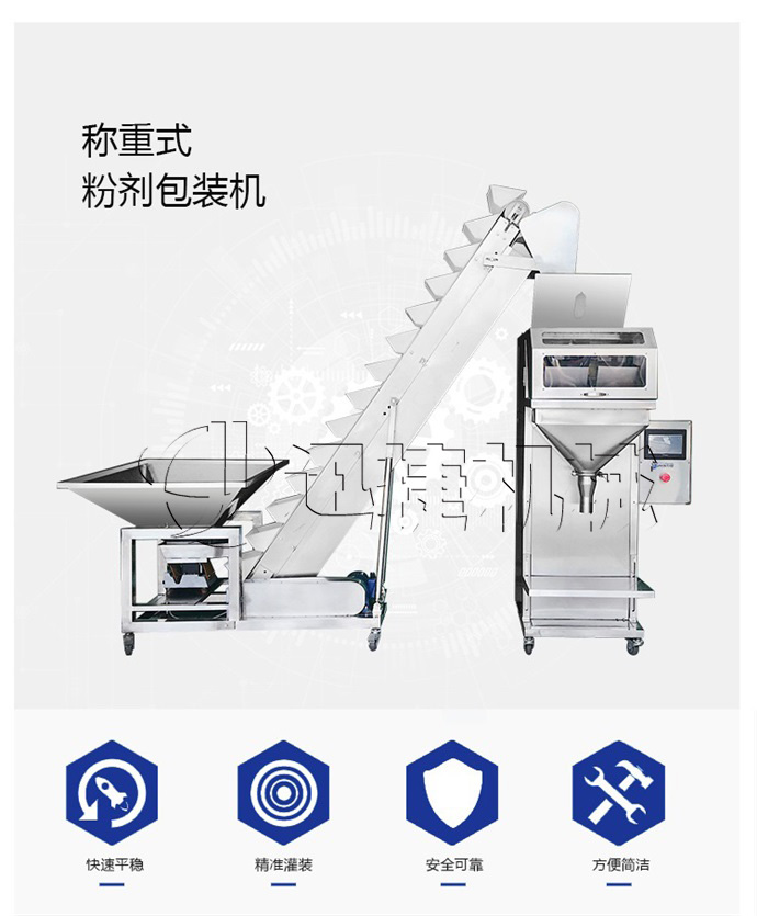 稱重式顆粒包裝機類似于定量包裝機能廣泛適用于農藥、肥料、獸藥、飼料、預混料、添加劑、洗衣粉、食鹽、味精、雞精、白糖、種子、大米等粒狀、粉狀物料的定量包裝。